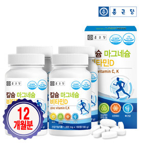 [면역기능] 종근당 칼슘 마그네슘 비타민D 총 12개월분 4병/아연/비타민C/비타민K